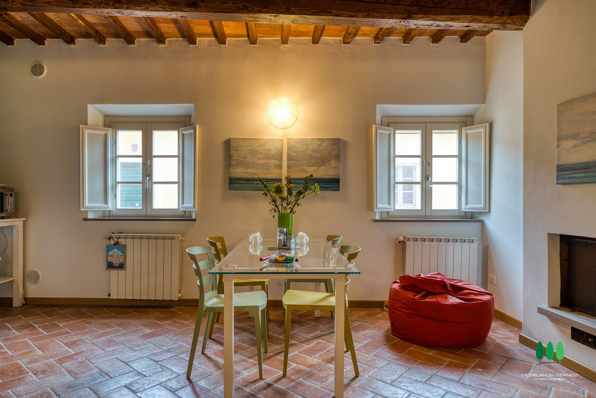 La Dolce Vita: Escapa al corazón de la Toscana en nuestro acogedor apartamento localizado en el pintoresco pueblo de Ghizzano, Peccioli - el reciente vencedor del concurso "Borgo dei Borghi"por la edición 2024. Perfecto para parejas, familias con hijos o ya sea para aventureros. Este encantador espacio ofrece una tranquila escapada con paisajes de ensueño y especialmente ubicado para hacer base y moverse a los diversos puntos turísticos de la Toscana. Ideal para trabajo remoto: Fast WiFi & desk