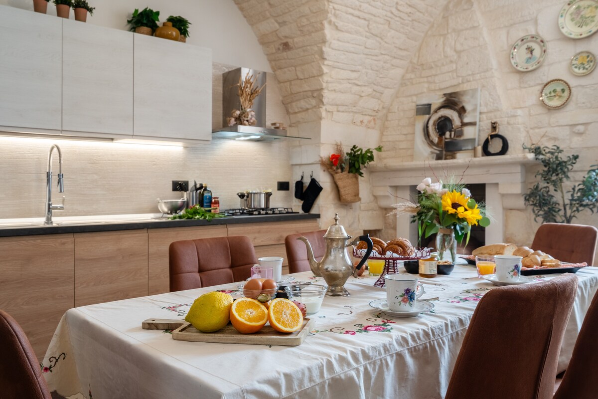 Un trullo renovado en una ubicación tranquila en el campo con un estilo auténtico, la mayoría de los interiores son reciclados o muebles antiguos reinventados de una manera moderna y funcional. Cuenta con 1 dormitorio doble y 1 sofá cama en el salón. Un baño recién renovado con ducha, cocina totalmente equipada, lavadora y mucho espacio al aire libre (una terraza accesible desde el dormitorio y otra en el otro lado con barbacoa). El acceso a la piscina se comparte con los huéspedes de las otras 2 propiedades (no externas).
