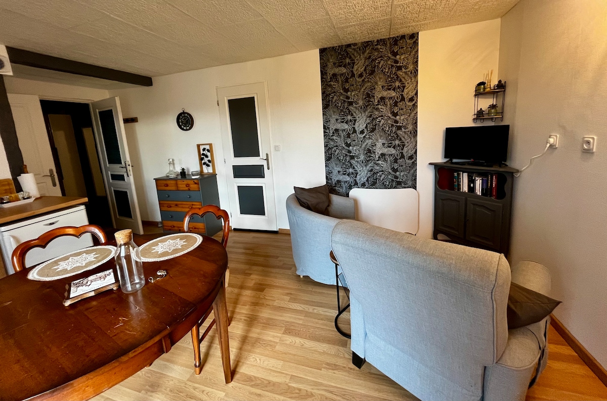 Rincón de naturaleza, tranquilo, en el corazón de un pequeño pueblo, ideal para parejas con 2 hijos. Alojamiento con: - dormitorio, cama doble, escritorio (conexión ethernet con fibra) - gran sala de estar, cocina equipada, sofá cama 190 x 130 - terraza con mesa, sillas, sombreada por el laurel - cancha de petanca A 30 minutos de Lyon, a 10 minutos de la estación de tren de Givors, a 20 minutos de Viena. Paseo por las montañas de Lyonnais y Pilat.