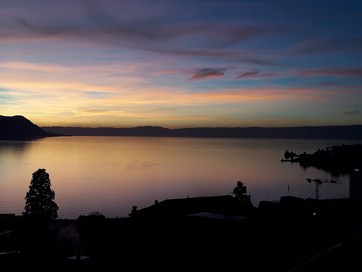En un pequeño edificio contemporáneo, situado en las alturas de Montreux (barrio de Territet), a unos diez minutos a pie del transporte (autobús, estación de tren y embarcadero) , apartamento de 80 M2, 2 habitaciones y medio ( dormitorio, gran sala de estar y cocina integrada), orientación suroeste frente al lago Lemán. Accesible para personas con movilidad reducida (ascensor) con aparcamiento privado disponible. El apartamento y la terraza son para no fumadores.