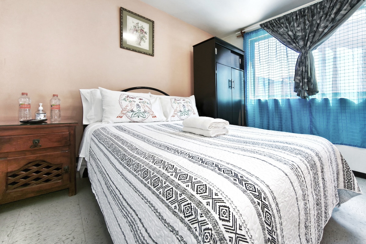 Desde 2018, Un Lugar Tuyo en Cdmx significa calidez, confianza y exclusividad total con su familia o amigos. Disfrute de comodidad, limpieza, cero ruido urbano, independencia, tranquilidad, seguridad y descanso. Hogar rústico, con cocina comedor pequeña, baño y recámara con 2 Camas + 1 individual. Ubicado en el primer piso. Con acceso a Metrobus, Metro Bellas Artes, a 12 minutos del Zócalo. Su estancia larga será mas confortable por descuentos de 1, 2, 3 semanas y mensual. Bienvenido el mundo!