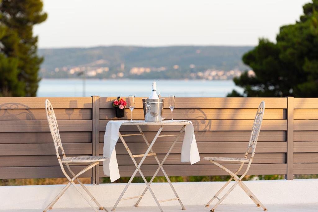 Nuestro apartamento estudio está justo al lado del mar. La playa más cercana está a solo 2 minutos a pie, mientras que la playa de la ciudad está a aproximadamente 7 minutos a pie. El interior es sencillo pero acogedor, con impresionantes vistas desde la terraza que te ofrece la experiencia de "sentarse en el barco". Tienes un restaurante muy bueno que funciona hasta las 2:00 a. m., pocas tiendas y un montón de cafeterías a aprox. 7 minutos a pie, el casco antiguo de Split en aproximadamente 15 minutos en coche (o 30 en autobús local).