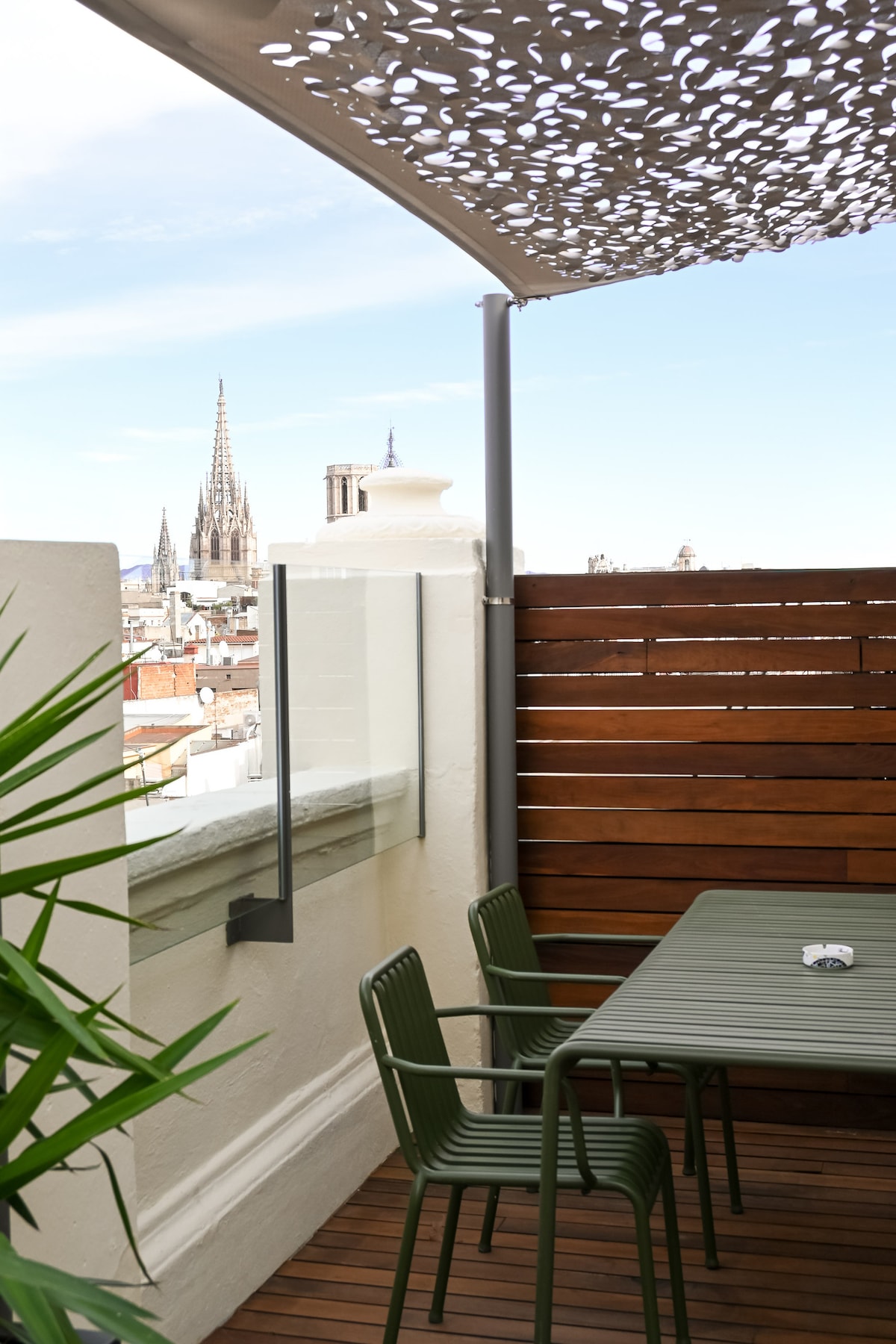 En pleno centro de Barcelona, un precioso estudio acogedor y moderno, totalmente equipado, para disfrutar de las vistas más espectaculares de la ciudad desde una terraza de más de 200 metros cuadrados, ambientada para los encuentros más mágicos...