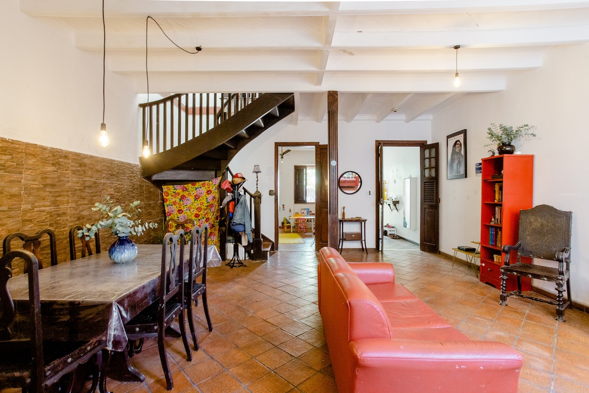 En el bucólico barrio de Sta. Teresa, en un terreno muy arbolado de 1000 m² en dos niveles, en la parte inferior se encuentran 2 unidades totalmente independientes que comparten jardín y piscina: este estudio y el apartamento (otro anuncio). Con vistas al Cristo (Corcovado), la montaña y el Sambódromo (desfiles de Carnaval), estamos frente a la antigua iglesia y al lado de una pequeña plaza familiar con bistrós. En una casa colonial y con acceso independiente, en la meseta superior residen los propietarios, siempre disponibles para ayudar.