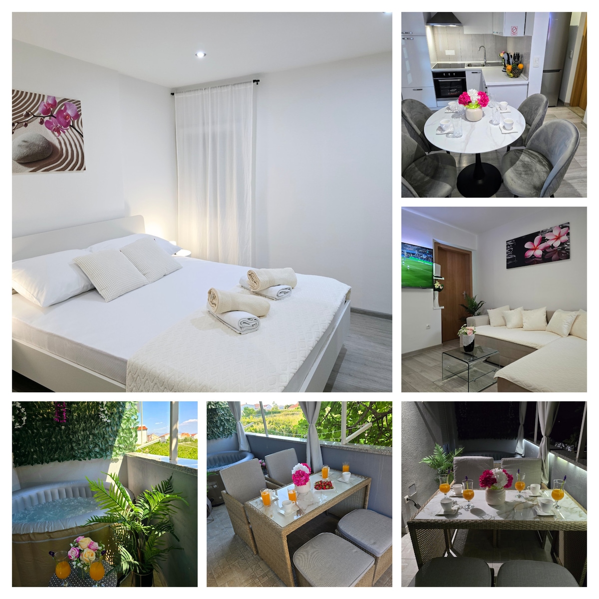 Uživajte sa svojom obitelji u ovom modernom smještaju.Apartman se nalazi u stambenoj zgradi na drugom katu. Na raspolaganju vam je privatna krovna terasa sa hidromasaznom kadom i roštiljem , garaža i dva parking mjesta. U apartmanu su dvije sobe , jedno kupatilo i dnevni boravak sa sofom na razvlačenje i potpuno opremljena kuhinja. Svaka soba je klimatizirana zasebnom jedinicom.