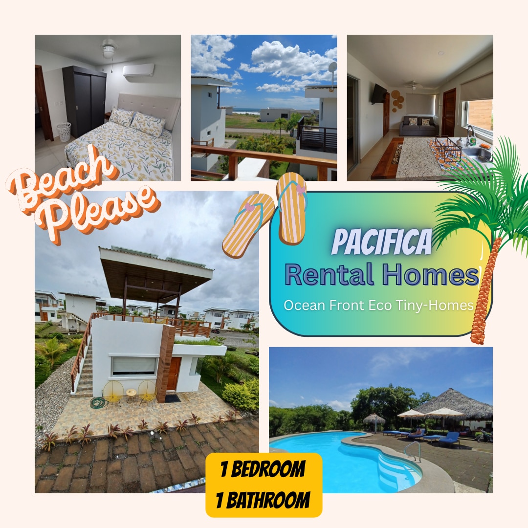 Relájate y recarga energías en esta casa 🌴 🏠 de playa Tiny Eco Solar de 1 dormitorio, bellamente diseñada, ubicada a solo unos pasos del océano 🌊 en el tranquilo Gran Pacifica Beach and Golf Resort. Esta escapada acogedora y sostenible es perfecta para viajeros solos, parejas o nómadas digitales que buscan paz, comodidad y belleza natural, todo a solo 1,5 horas del aeropuerto de Managua. A solo 1 minuto a pie de la piscina comunitaria y a 3 minutos a pie de la playa, ¡podrás relajarte en poco tiempo!
