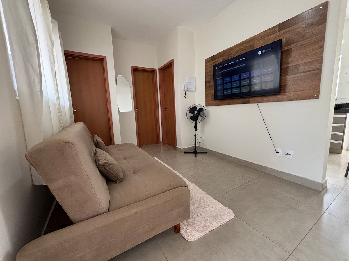 Descubre nuestro moderno apartamento de estilo industrial en Uberlândia, donde se unen la comodidad, la funcionalidad y la conveniencia. Lo más destacado es el espacio de trabajo, perfecto para la oficina en casa, con una conexión a Internet ultrarrápida de 600 GB. El departamento tiene dos dormitorios, uno con una cama doble y un armario, y otro con un espacio de trabajo y una cama individual. La sala de estar está iluminada por una gran ventana que se extiende hasta el comedor y la cocina. Edificio con ascensor