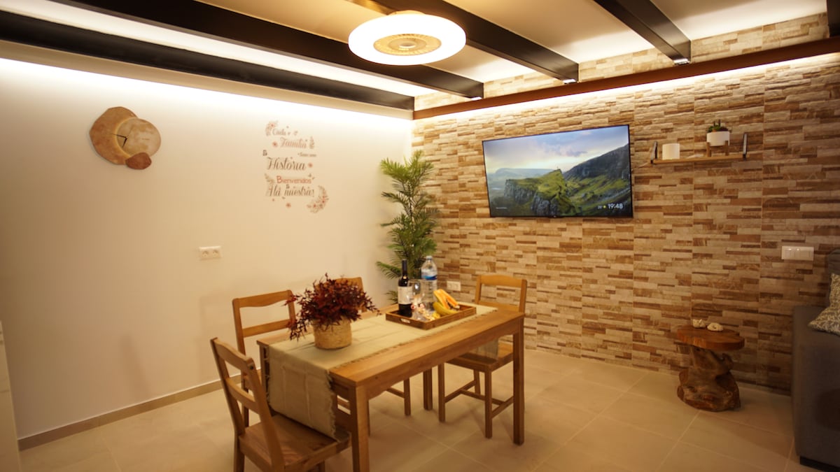 Mi bonito y familiar apartamento está equipado para disfrutar de unas estupendas vacaciones. Desde la terraza podrás ver amaneceres espectaculares sobre el mar, comer en deliciosos restaurantes cerca o tomar una copa, practicar deportes de agua o simplemente tumbarte en la arena. Serás bienvenido como huésped si entiendes el concepto de Airbnb, no se trata de un Hotel sino de mi casa, con sus virtudes y defectos, pero preparada con todo el cariño para hacer agradable vuestra estancia.