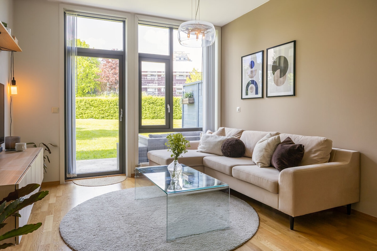 Departamento nuevo y moderno con terraza/jardín protegido y bonito. Situado en una zona residencial tranquila con muy buena conexión de autobús al centro de la ciudad (a 5 minutos de la parada de autobús). 1 estacionamiento. A poca distancia a pie de NTNU. El departamento es adecuado para estadías de corta duración, pero también para períodos de tiempo más largos. Dormitorio con una cama doble, con la posibilidad de 2 camas supletorias.