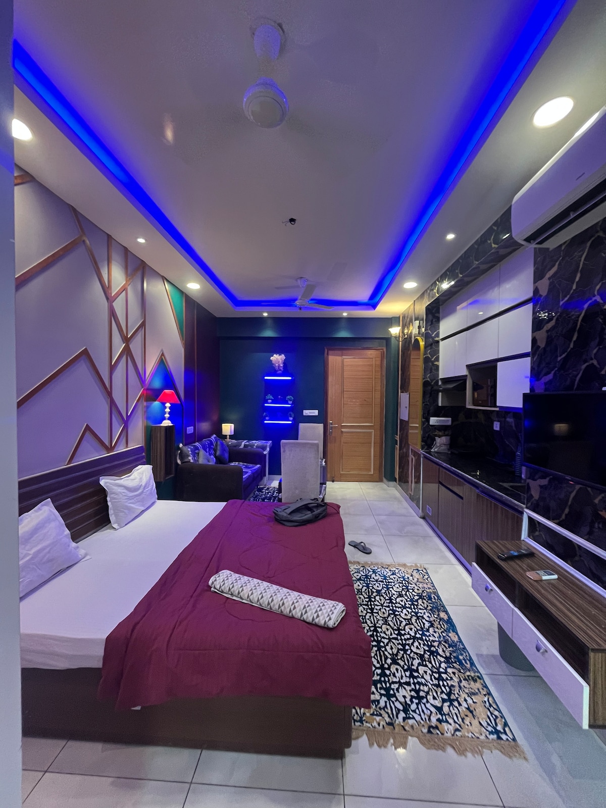 Meraki Apartment – Ultra-Luxurious 2BHK with elegant interiors • 24/7 power backup & AC Rooms • Smart TV with OTT subscriptions • 150 MBPS WiFi for seamless work & entertainment • Dedicated work desk • Bar counter • Balcony with sunrise views & greenery • Smart home lights & Alexa speaker • Fun activities: UNO & playing cards • Fully equipped kitchen: microwave, refrigerator, gas stove, RO, chimney • Washing machine • Cover parking available
