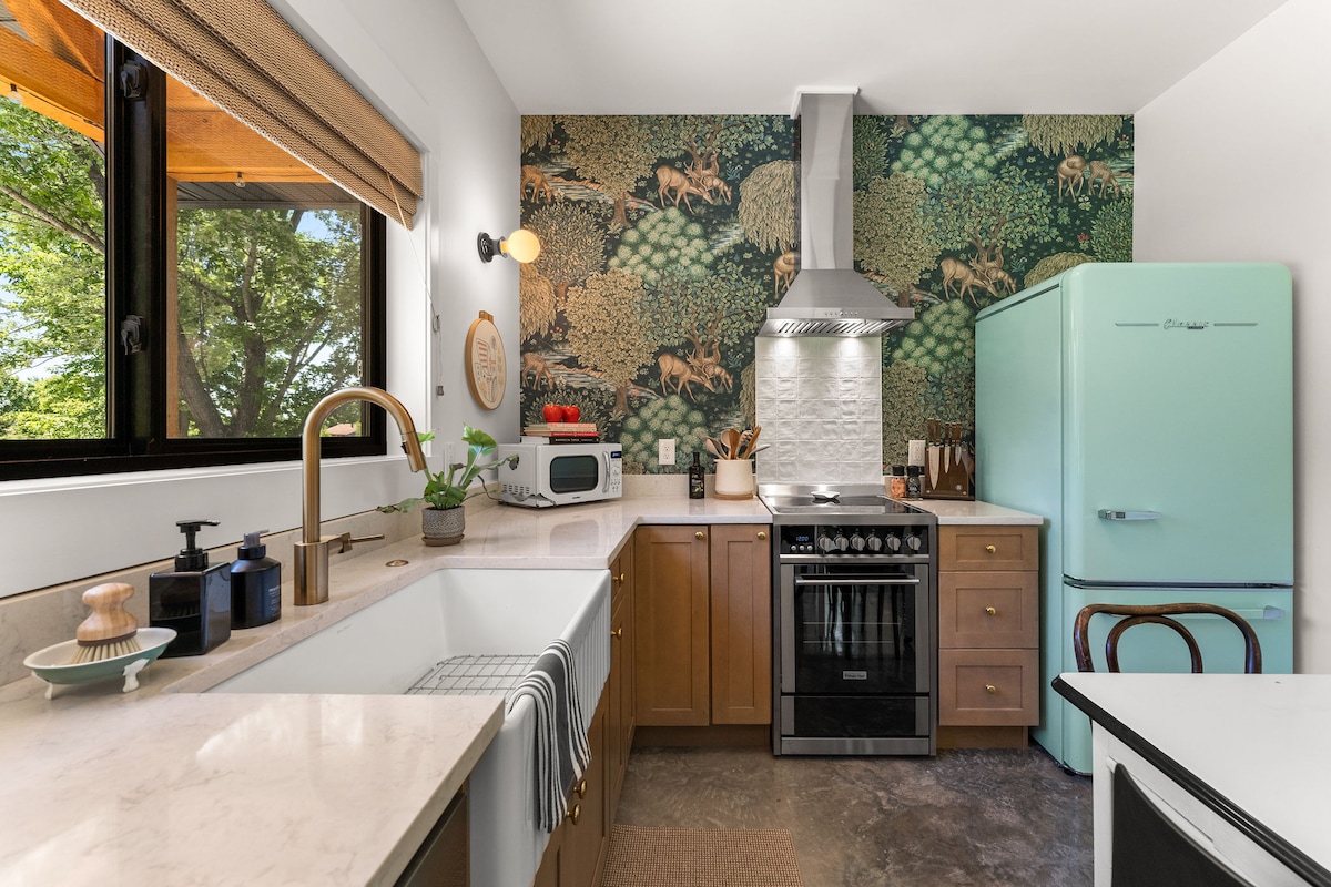 ¡Evita los hoteles y disfruta de un apartamento tipo estudio privado, bellamente decorado y apto para perros al lado de la mejor tienda de delicatessen italiana de Springfield y una cafetería asiática de té de burbujas! Estamos ubicados en el límite de un barrio seguro y pintoresco, y a poca distancia a pie de restaurantes, un club nocturno y el Hospital Mercy. MSU, Bass Pro Shops y el centro comercial Battlefield están a menos de 3 kilómetros. Estamos a 10 minutos de la vida nocturna del centro de la ciudad, a 20 minutos del aeropuerto y a 45 minutos de Branson.