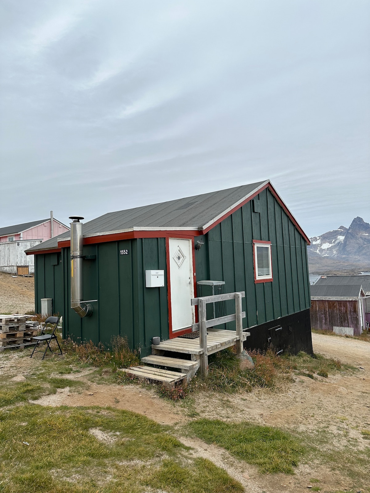 Una casa encantadora con una increíble vista panorámica de un fiordo lleno de icebergs. El nido perfecto para dos personas. Cocina completa, dormitorio con ventana en la azotea, sofá plegable y mesa en la habitación delantera. Gran biblioteca multilingüe. La terraza de madera tiene vistas al casquete polar. Calentador eléctrico para los días más fríos. Agua corriente caliente y fría en la cocina. Solo hay agua fría en el lavabo del baño. El baño tiene un inodoro de compostaje y no hay ducha.