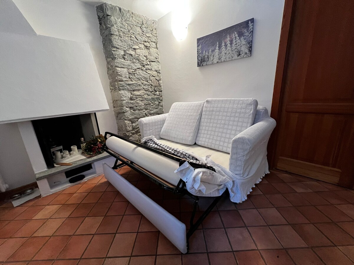 "La Casa dell 'Arco" toma su nombre del arco de entrada, un elemento típico de la arquitectura de Frassinetto, que caracteriza a esta casa histórica. Su núcleo más antiguo probablemente data del siglo XIII al XIV. La unidad se compone de tres habitaciones con atención a los detalles para redescubrir el cálido ambiente de las casas alpinas. La sala de estar con sofá/cama y chimenea precede a la cocina y para completar una hermosa habitación con ducha y un baño cómodo y equipado.