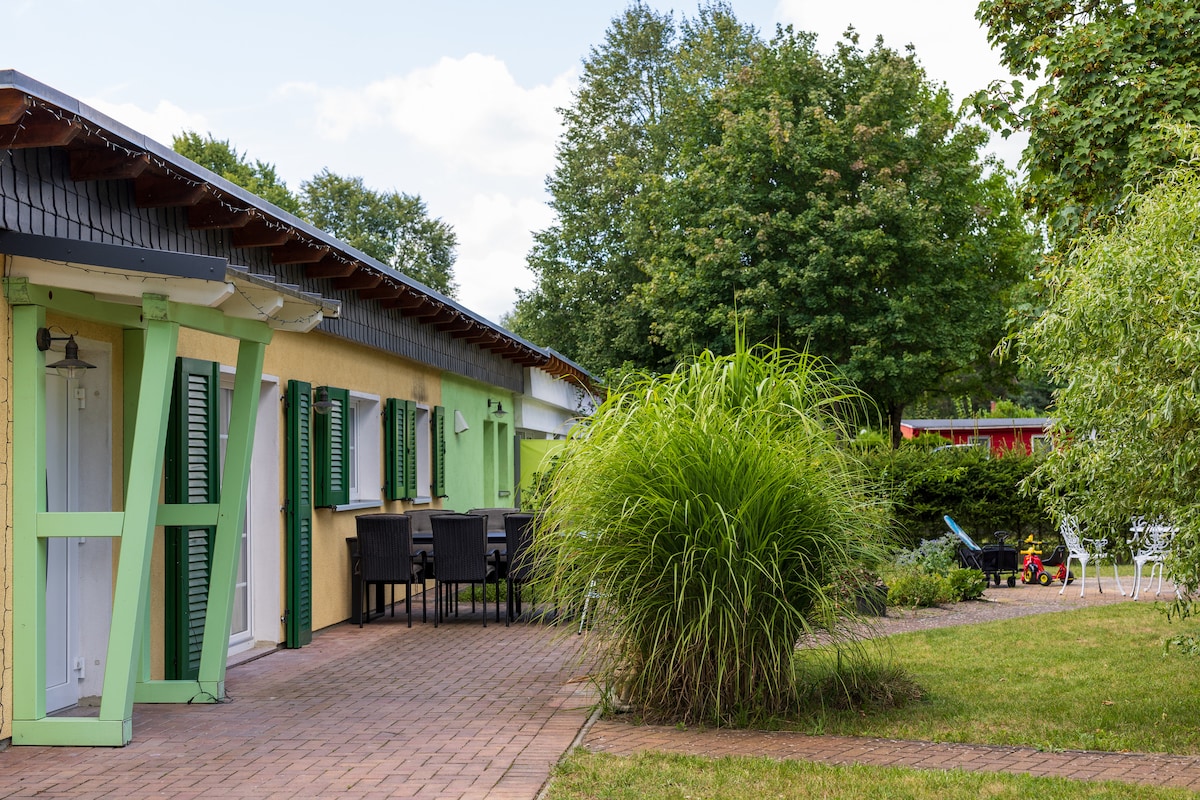 La casa fue renovada con amor. La casa está en el complejo vacacional de Griminitzsee, en Schorfheide, una de las zonas forestales contiguas más grandes de Europa y a unos 60 km al norte de Berlín. El apartamento está diseñado para hasta 4 personas. Dos maravillosas terrazas, un baño con ducha, una cocina totalmente equipada; un dormitorio y una sala de estar/ comedor. TV, Apple TV, Wi-Fi y acceso a Netflix forman parte de las comodidades.