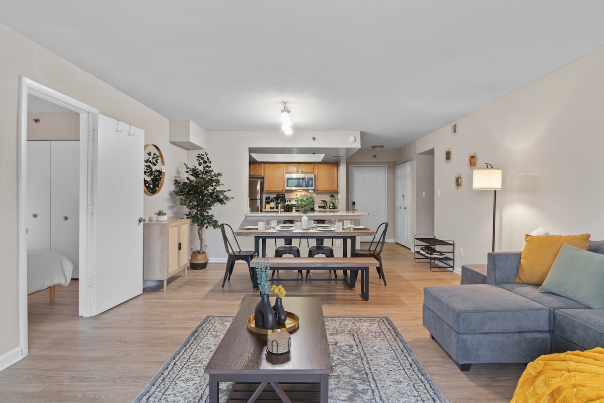 ¡Te damos la bienvenida a tu retiro ideal en Arlington! Lujoso apartamento de 2 camas en Crystal City ofrece vistas al balcón, Internet de alta velocidad Xfinity y lavandería en la unidad. Explora la vibrante vida de la ciudad a pocos pasos de restaurantes, tiendas y acceso al metro. Relájate en el salón de la azotea con mesa de billar, gimnasio y cancha de bastketball/raquetball. El estacionamiento gratuito en el garaje garantiza estancias sin complicaciones. ¡Tu mezcla perfecta de comodidad y conveniencia te espera!