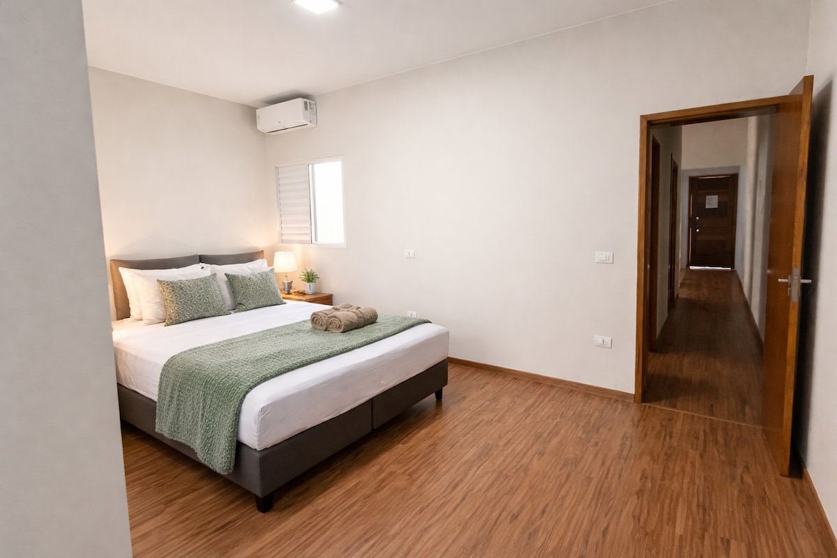 Apartamento confortável e funcional, ideal para quem vem a trabalho ou em família. Localização central com fácil acesso a tudo em Monte Carmelo. ✔ 2 quartos com ar-condicionado (1 suíte com cama queen + 1 quarto com 2 solteiros) ✔ Sala com sofá-cama (acomoda mais hóspedes) ✔ Cozinha completa equipada ✔ Wi-Fi estável para trabalho e streaming ✔ Garagem com portão eletrônico Ambiente organizado, prático e pensado para uma estadia tranquila — seja curta ou longa.