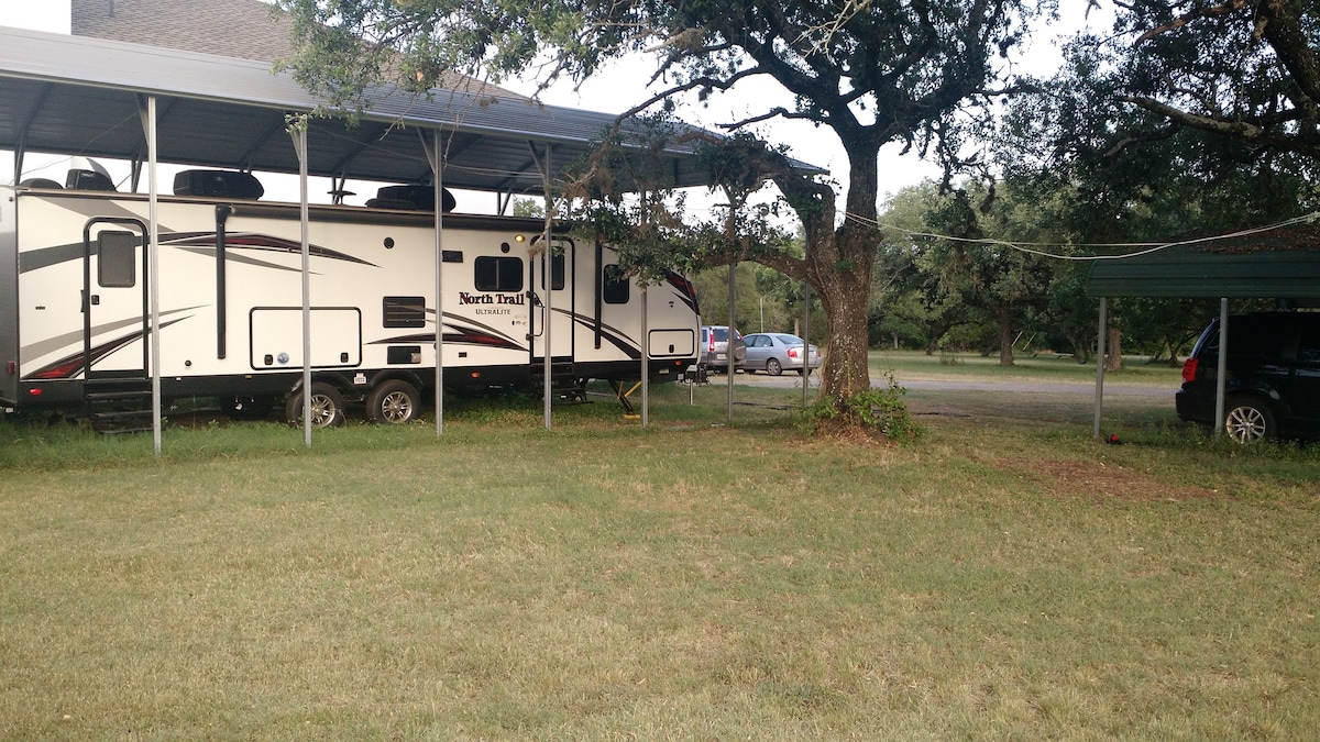 Ven a alojarte en Hill Country... Un gran remolque de viaje de 32 pies ubicado bajo robles. Dormitorio privado con una cama tamaño queen. Amplia cocina y sala de estar con un gran escritorio en caso de que necesites trabajar. Se te proporciona una llave para el remolque de viaje y el control remoto de la puerta para que puedas ir y venir cuando quieras. Al entrar, hay una hoja de instrucciones en el escritorio que debería responder a cualquier pregunta que puedas tener. ¡Esperamos verte pronto!