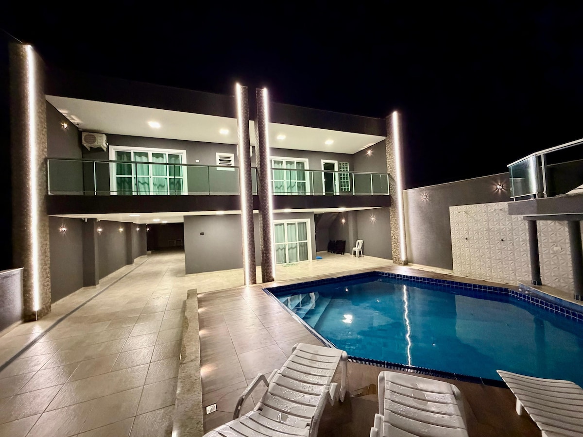 ✨ Viva o melhor do litoral no Balneário Atami Casa de alto padrão a apenas 200m da praia, em condomínio fechado e cercado pela natureza. Piscina privativa com cascata e bar molhado, 6 quartos (5 suítes), ambientes climatizados, sala de jogos e área externa ampla. Totalmente equipada, ideal para famílias e grupos que buscam conforto, exclusividade e lazer perto do mar.