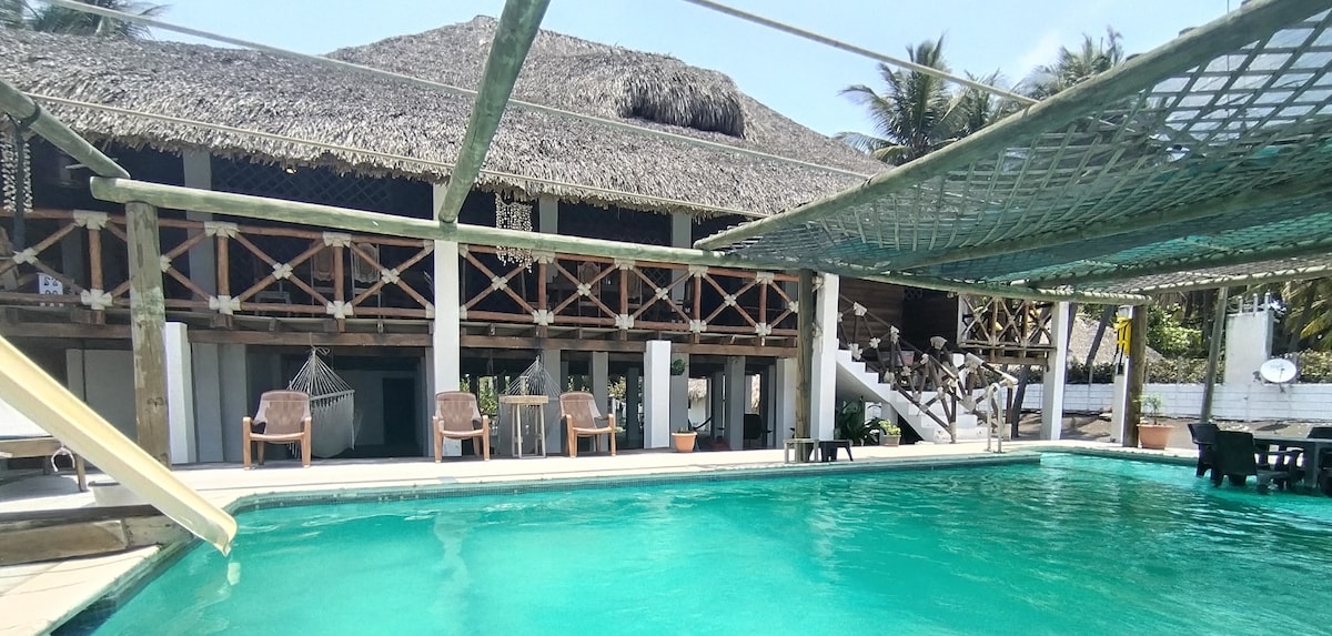 Amplia casa de playa, con amplia piscina para niños y adultos, terraza para eventos, hamacas, a pocos metros de la playa, ideal para pasar dias descansando y disfrutando de las olas del mar.
