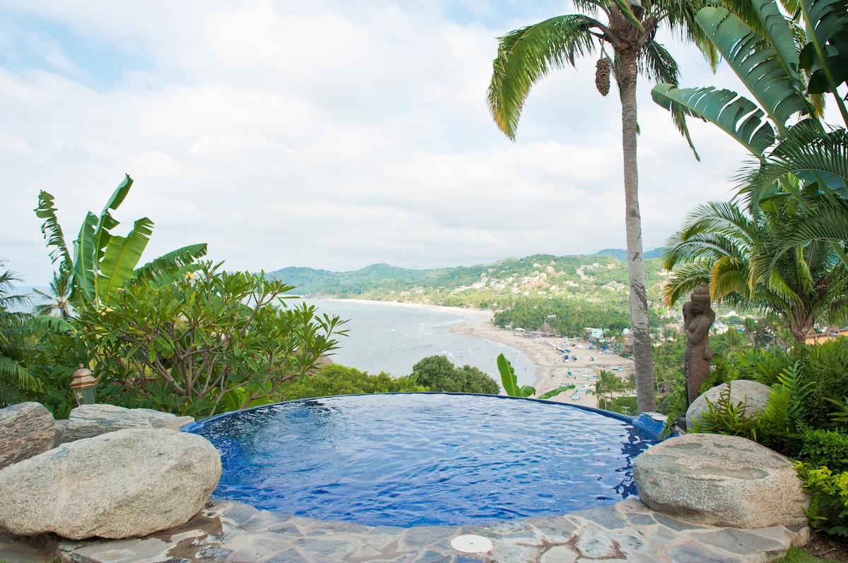 Villa Tayrona is a 9-room villa just 7 blocks (walking distance) from Bucerias' gorgeous beach. Guests who walk into our space often describe it as an oasis within Bucerías. The tropical plants, stone pool, thatch roofs, and modern Mexican touches make for a truly unique experience. The Zamia Suite is a studio-style room with a king bed and a fully equipped kitchen, tucked between two private gardens and attached to a high-end bathroom.