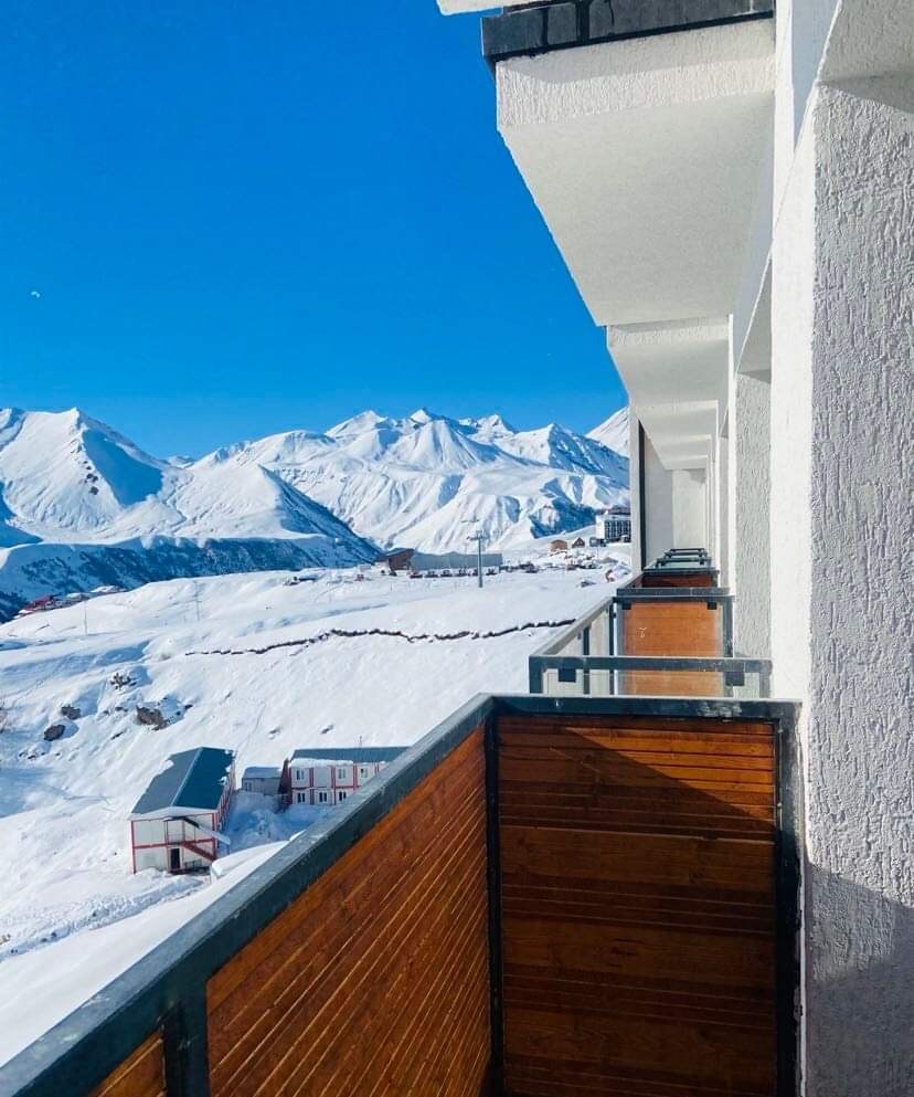 El apartamento se encuentra en el recién construido apartahotel Atrium, New Gudauri, a escasos metros del telecabina. Ofrece un amplio balcón con asientos y vistas impresionantes a las montañas y pistas de esquí. Este moderno apartamento incluye una cocina con todos los servicios básicos. Cuenta con baño privado con artículos de aseo, zona de estar con sofá y mesa, TV inteligente e internet de alta velocidad. Las reseñas describen mi alojamiento mejor de lo que yo podría hacerlo. ¡Por favor, echa un vistazo!