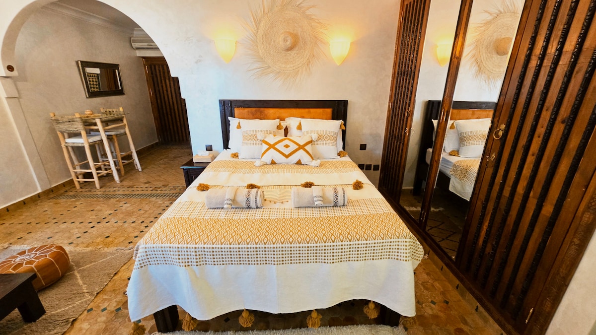 AZ RIAD es más que un lugar donde alojarse, es un arte de vivir y una historia de amor. Una historia de amor entre una familia francesa y Marruecos. Un estilo de vida también porque en este Riad todo es sobrio y elegante. Nuestro Riad de tres dormitorios, tres baños y una piscina en la azotea es un verdadero remanso de paz, ya que combina la tranquilidad y la proximidad a las principales atracciones turísticas (de la plaza Jemaa El Fna, declarada Patrimonio de la Humanidad por la UNESCO).