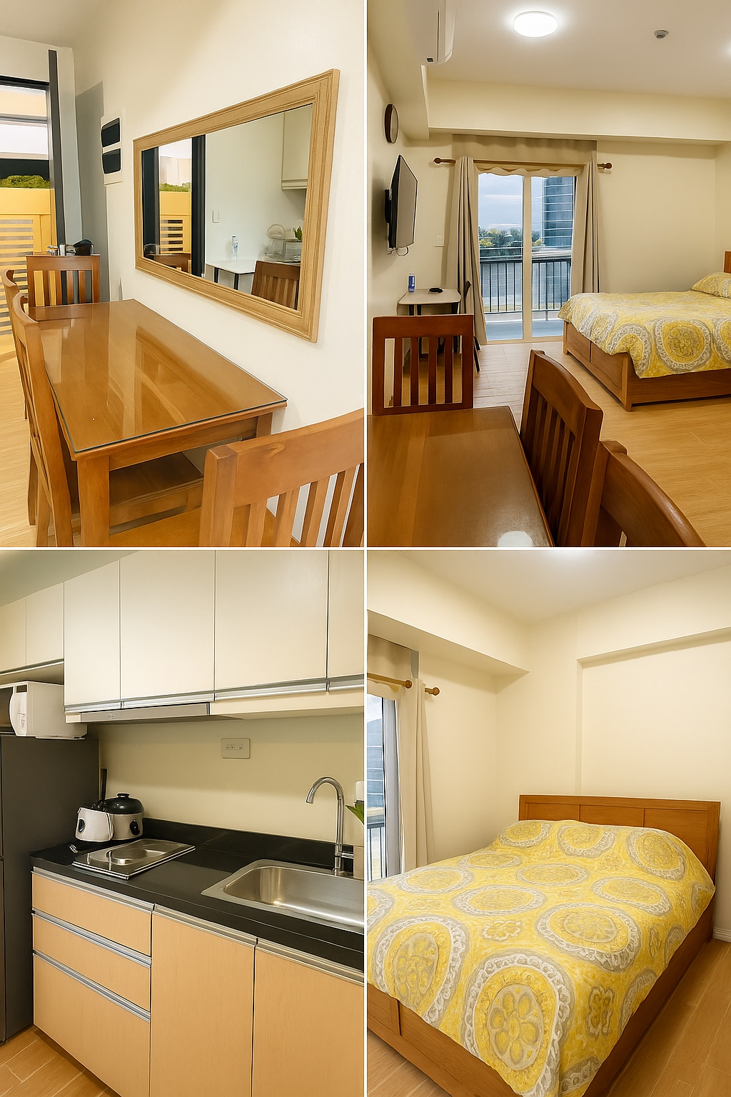 Ubicado en la ciudad de Iloilo (unidad de condominio). ¡Unidad de 2 dormitorios TOTALMENTE AMUEBLADA! Disponible para estancias vacacionales, alquiler semanal o mensual. La tarifa incluye el uso de: Televisor de❣️ 55 pulgadas con Netflix ❣️ Wifi (banda ancha) Ducha ❣️ fría y caliente. ❣️ Microondas ❣️ Calentador y olla arrocera Cocina de❣️ inducción Artículos y utensilios de❣️ cocina ❣️ Acceso a piscina, gimnasio y billar. Establecimiento cercano: ⭐SM City Iloilo Centro comercial⭐ Atria ⭐ Megaworld Centro de convenciones de⭐ Iloilo ⭐ Otros supuestos. Mensaje