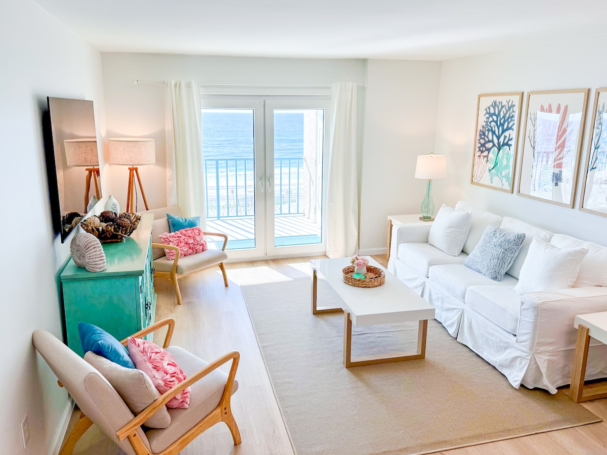 ¡Bienvenido a tu escapada perfecta a Gulf Shores! - Apartamento de 2 dormitorios y 1,5 baños con capacidad para 6 huéspedes - A pocos pasos de la playa con balcón privado - Acogedora sala de estar con TV inteligente. - Cocina totalmente equipada para facilitar la preparación de comidas - Piscina en las instalaciones para relajarse. - Estacionamiento conveniente disponible. - Justo enfrente de la playa - Explora las atracciones cercanas, como el Gulf State Park y el Alabama Gulf Coast Zoo