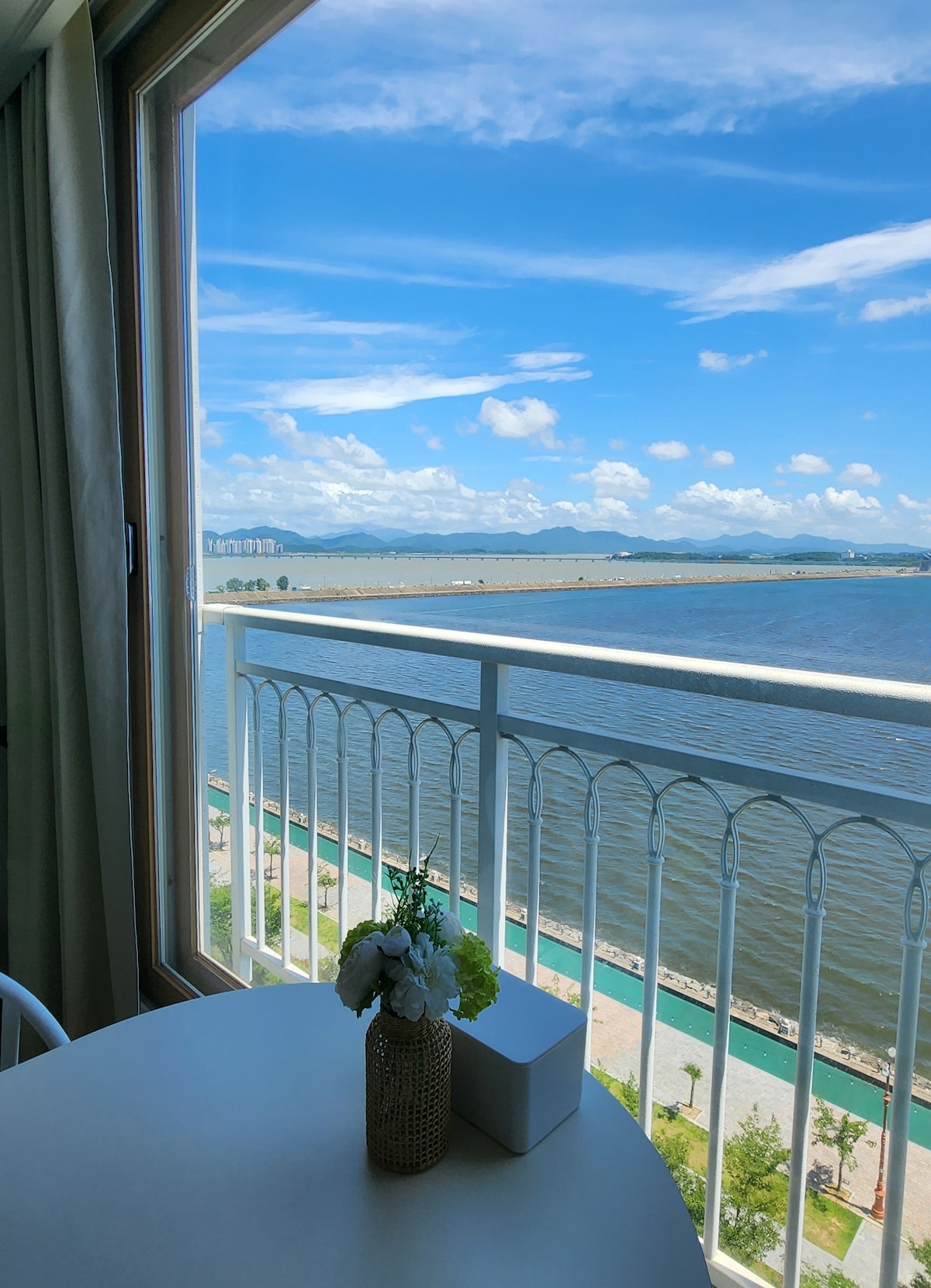 🏨Una habitación privada en la planta superior de un edificio de gran altura situada en el popular lugar de Pyeonghwa Square, con una abrumadora vista panorámica de 180 grados al mar, un espectáculo de fuegos artificiales, una fuente de mar danzante y un restaurante donde se puede disfrutar del amanecer desde el alojamiento. Disfrutando del mar nocturno con la pantalla de 100 pulgadas del proyector D-Preestyle Beam. No me da envidia el cine ott (Netflix, cuenta de anfitrión de Disney Plus).💯💯 💕 Mejores vistas que un hotel y una habitación privada más cómoda con una cama king size de 5 estrellas de Simmons, Durante el día, el mar esmeralda que se despliega como una foto de una gran ventana, una taza de café y un pozo de agua. Es una playa con una fuente de mar que baila por la noche y una hermosa vista nocturna, para que puedas disfrutar de 🌅 la comodidad, el descanso y la relajación que sueñas en tu vida diaria mientras observas el amanecer por la mañana. 💕