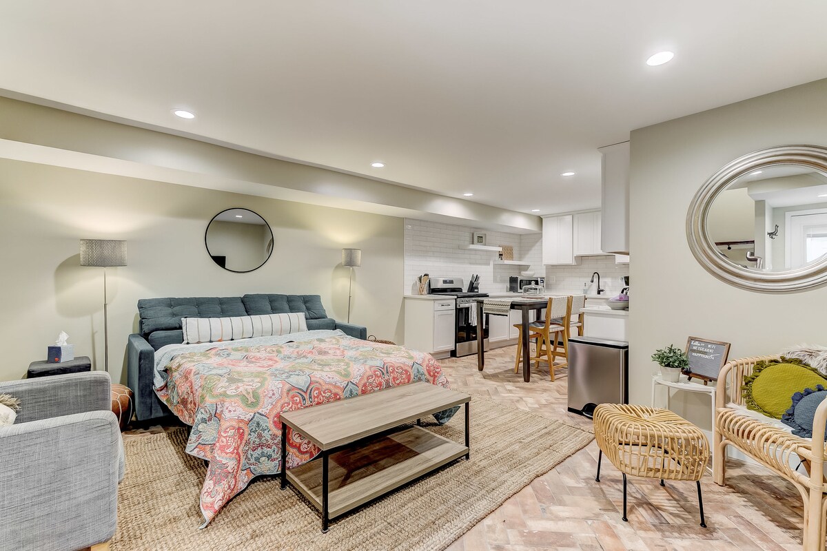 ¡Acogedora suite privada en el sótano recientemente actualizada con decoración y estilo de moda! El lugar de un dormitorio ofrece mucho más que eso. Tendrás el uso total de la cocina de estante abierto, la acogedora sala de estar perfectamente configurada, el espacioso baño completo, el rincón de desayuno y la lavandería si es necesario. A cualquier pareja, profesional que trabaje o familia pequeña/ grupo de amigos le encantaría la estancia aquí. Sin mencionar la excelente ubicación conveniente para todas las atracciones de Baltimore. Hay mucho estacionamiento disponible.