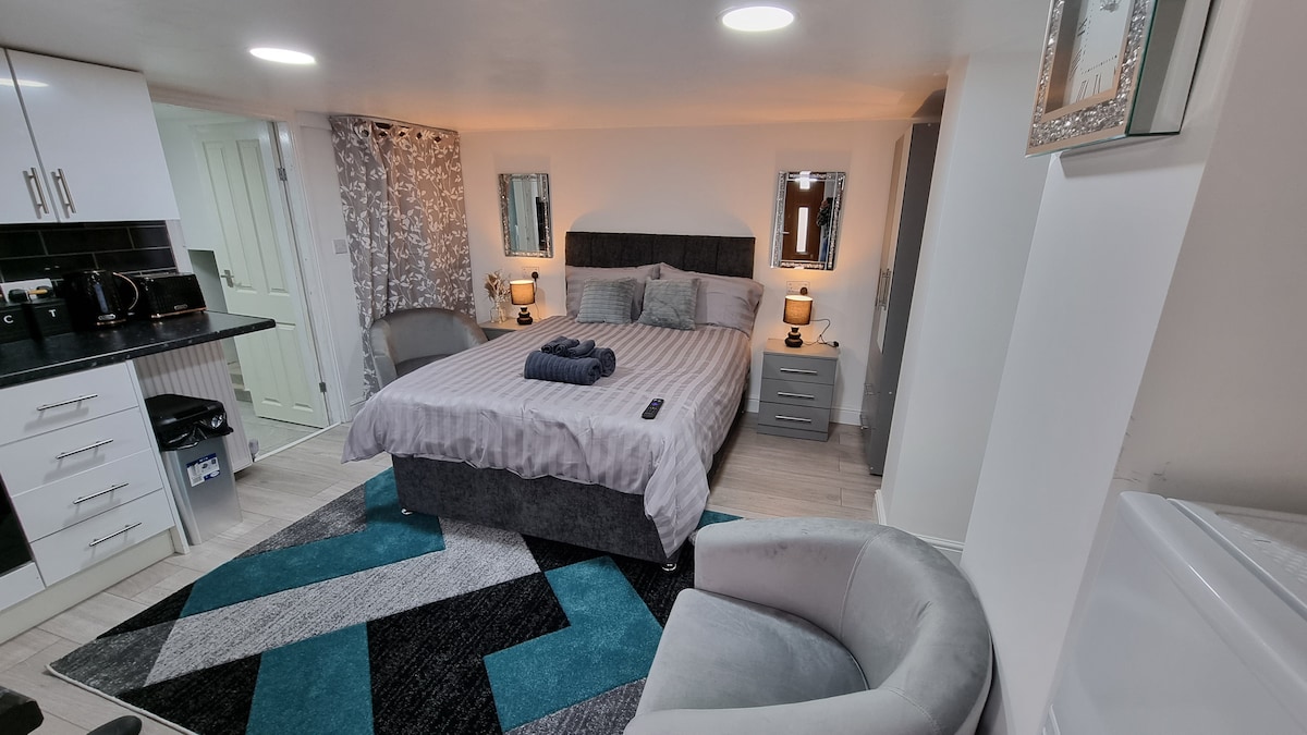 Este es un elegante apartamento estudio recién construido y renovado con su propia entrada privada y baño privado. Está terminado con los más altos estándares con una decoración moderna y tiene un carácter único "oculto". Está relativamente cerca del centro de la ciudad de Leeds con muy buenas conexiones de transporte y está situado en la animada y diversa zona de Leeds LS8. Es un apartamento estudio en el sótano muy cómodo y todas las comodidades están disponibles a poca distancia. A solo 4 minutos a pie del Hospital Universitario Saint James.