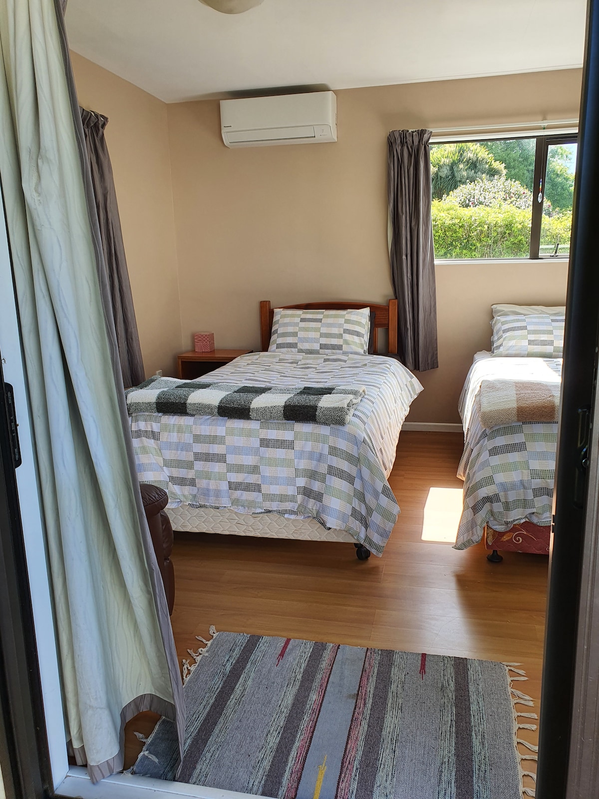 Disfruta de una acogedora casa de huéspedes privada ubicada detrás de nuestra casa con su propia terraza orientada al oeste (con barbacoa) que tiene una amplia vista al campo. Tenemos el Hauraki Rail Trail a la vuelta de la esquina, y más allá, paseos/treks por el bosque y las hermosas playas de la costa este de Coromandel. La casa de huéspedes puede alojar cómodamente a 3 personas: una pareja en el dormitorio principal y 1 huésped en el dormitorio individual. Nota: se aplica una tarifa adicional de 30 $ por noche a cualquier huésped que use el dormitorio individual, incluidos los niños.