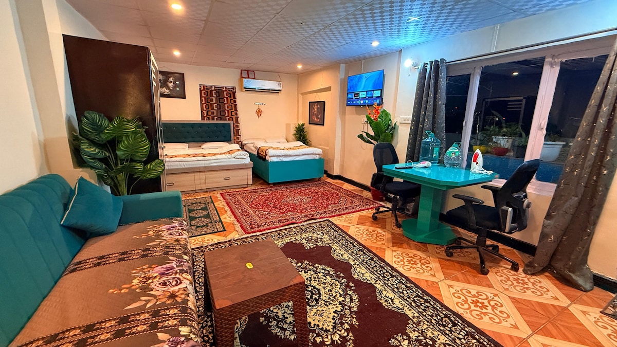 El ático AC está en el corazón de Jaipur, a 7 km del aeropuerto y a 3 km de la estación de tren. Tiene mercado cercano, restaurantes, localidad tranquila y elegante, camas cómodas y baño limpio, con vistas al Fuerte. Tiene una cocina totalmente equipada con estufa, microondas, nevera, tostadora, tetera y utensilios para cocinar. Taxis en la puerta y la estación de metro está a 300 metros, te lleva a lugares turísticos. Los residentes locales de Jaipur no pueden reservar ni quedarse. Cargos adicionales por electricidad por uso de aire acondicionado y calefacción. (4 unidades gratis por día)