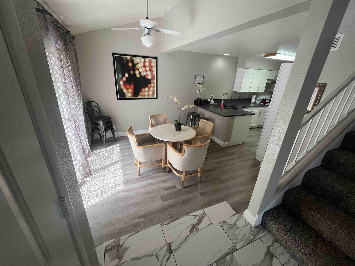 ¡Experimenta la tranquilidad en nuestra luminosa y acogedora unidad de arriba con acceso privado, ubicada en el corazón de Silverado Ranch! Relájate en el gran patio con barbacoa, con vistas a un sereno patio trasero, perfecto para el café de la mañana o las bebidas de la noche. El segundo dormitorio flexible funciona como una oficina, ideal para el trabajo a distancia. Ubicado a solo 13 minutos del aeropuerto y cerca de tiendas y restaurantes, nuestro alojamiento ofrece comodidad y confort. Disfruta de la espaciosa sala de estar y el comedor para una estancia verdaderamente relajante.