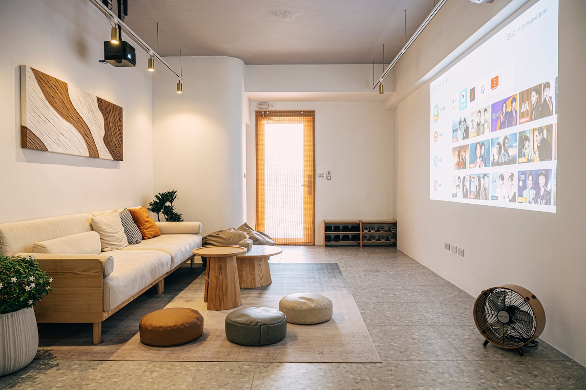 3 rooms (1 double + 2 quads) plus a private courtyard and KTV room. The room rate is based on number of people. 2~6 can only use two rooms, and the other room cannot be booked. If 2 to 6 want use all 3 rooms, please ask us to pay extra fee. ps: This package is not an independent building. There are other rooms in the same building. A cafe on the first floor. The back door of your room leads to the same small separate backyard, and guests in other rooms cannot use this space and the KTV room.