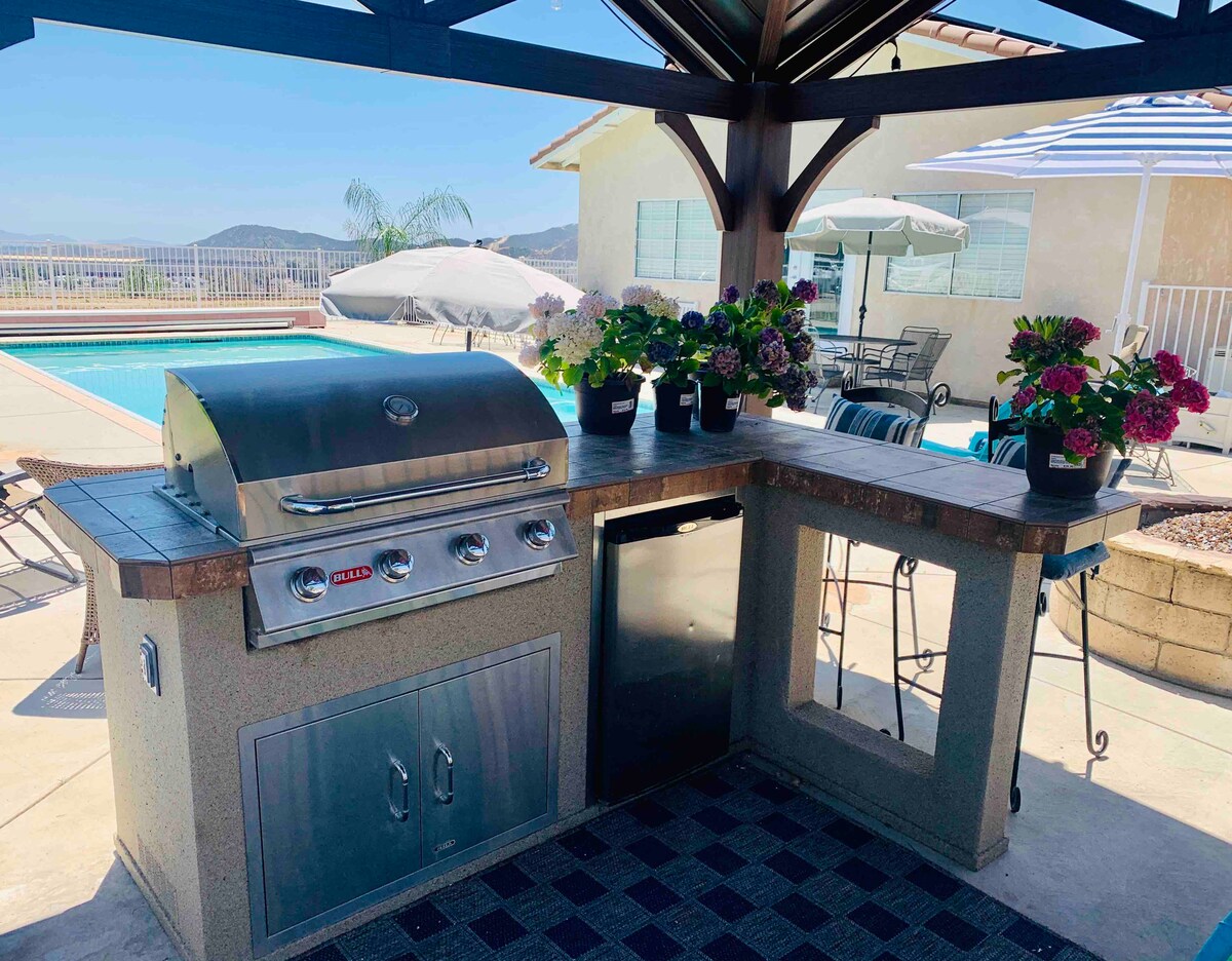 Esta encantadora casa de campo se encuentra en la base de las montañas de San Bernardino, donde tendrás vistas a las montañas nevadas en las estaciones más frías y vistas a las hermosas puestas de sol durante todo el año. Cerca de autopistas, centros comerciales y rutas de senderismo. Relájate junto a la piscina mientras las puertas de la casa se abren a la piscina y a la barbacoa y chimenea al aire libre. Es un gran lugar para escaparse con todas las comodidades recién remodeladas para una estancia cómoda. Mucho aparcamiento. ¡NUEVOS servicios de SPA de día en el lugar! ESTE ESPACIO NO ES APTO PARA NIÑOS PEQUEÑOS