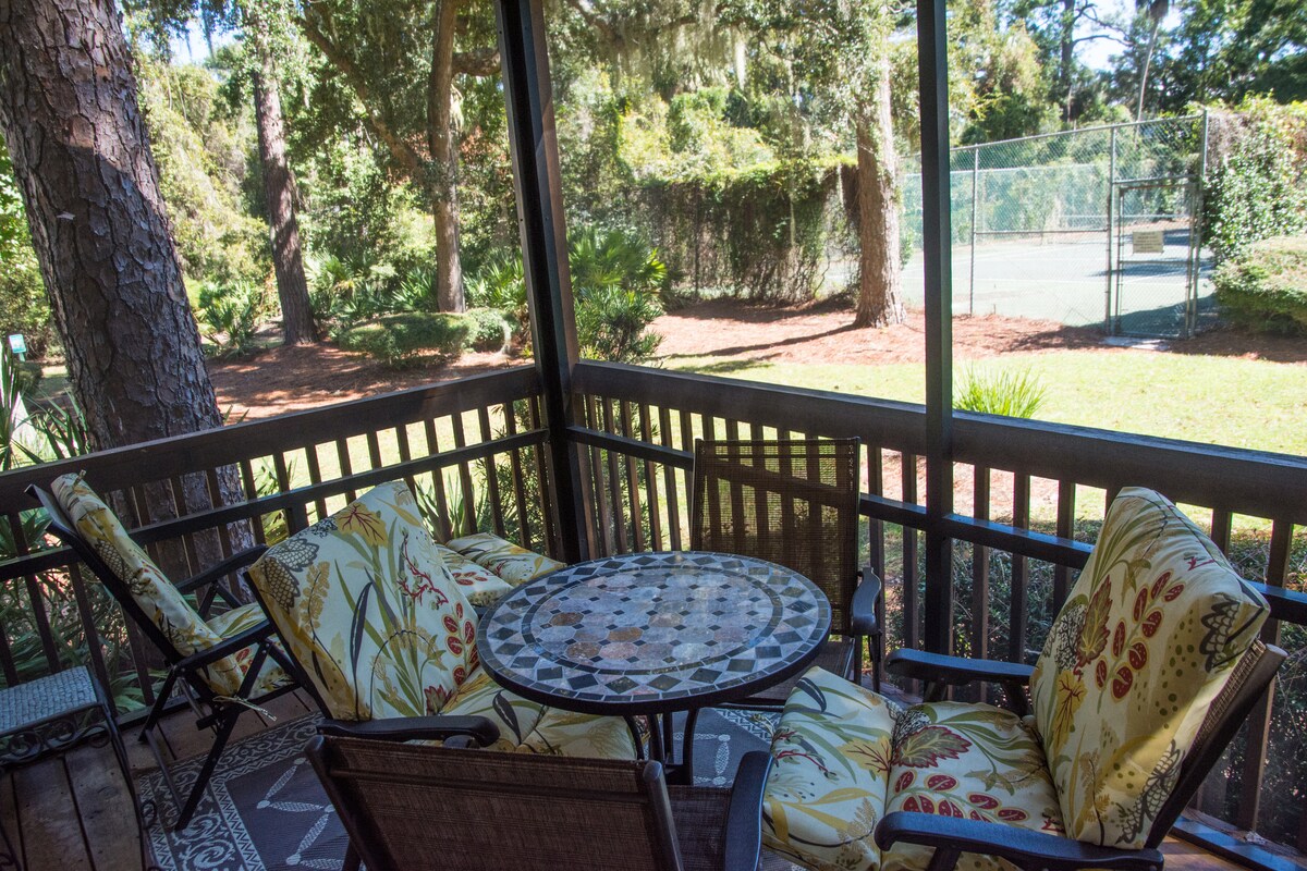 ¡Esta villa es perfecta para unas vacaciones familiares en la playa! Nosotros también tenemos niños pequeños, así que tenemos todo el equipo necesario para que esta sea una estancia cómoda y relajante. Nos ENCANTA esta villa por su porche cerrado, TENIS GRATUITO y proximidad a la playa. ¡El porche cerrado te permite disfrutar del desayuno y la hora feliz sin mosquitos y lo suficientemente cerca como para escuchar las olas! Las playas están mucho menos concurridas que otras zonas de la isla y está muy cerca de Sea Pines y Coligny Plaza.