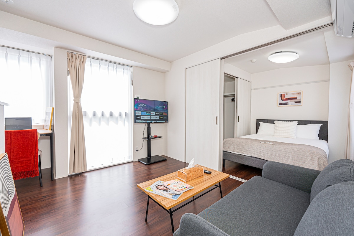Apartamento 1LDK-501: cama doble/amplio espacio de almacenamiento/cocina/bañera/lavadora/televisión/plancha/wifi/cerca de tiendas