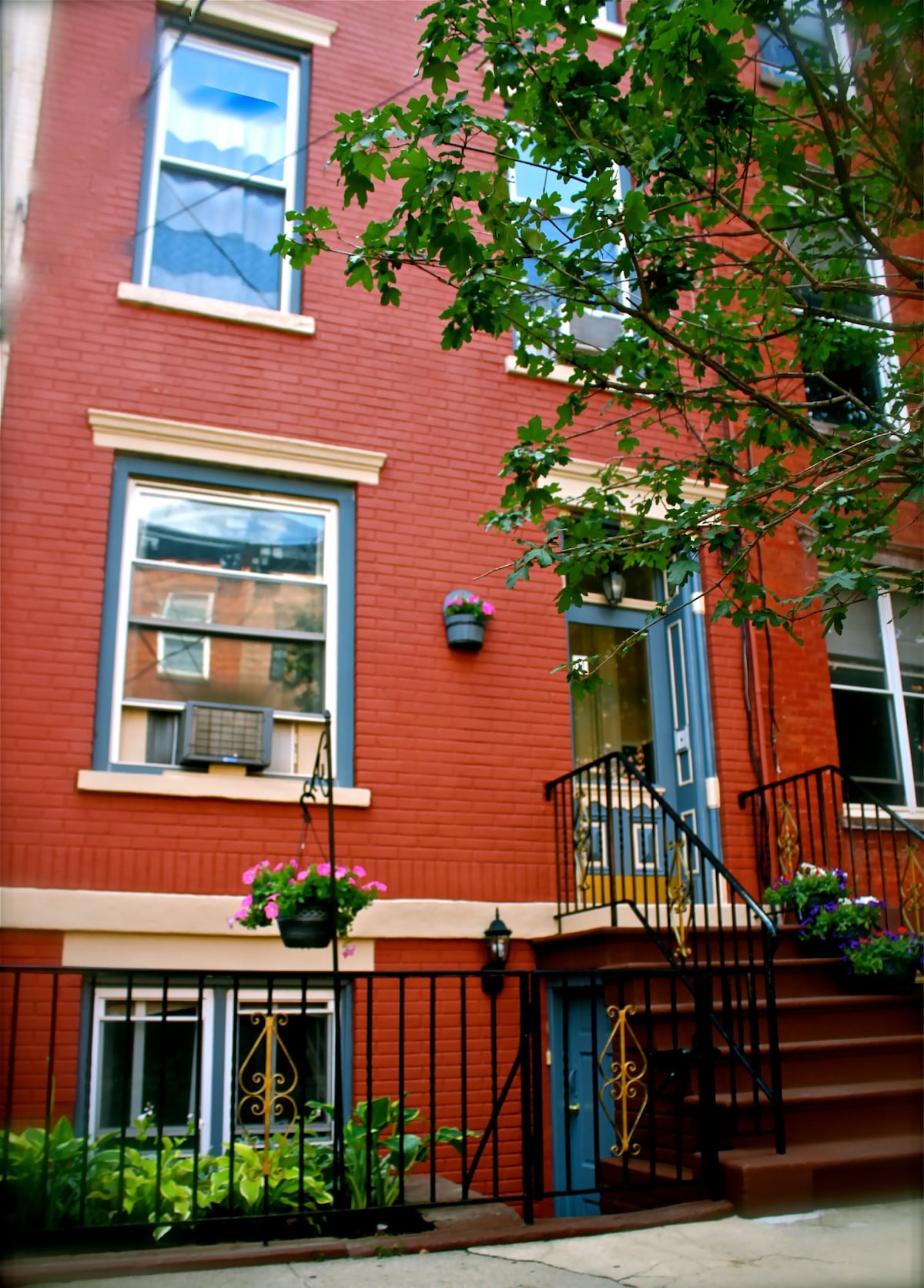 Dúplex privado lleno de sol en una tranquila e histórica calle de adoquines. Disfruta de una entrada privada donde subes las escaleras hasta una cocina totalmente equipada. En el tercer piso está tu dormitorio, un baño grande y una sala de estar donde abundan los tragaluces y las ventanas. Este alojamiento se encuentra a poca distancia a pie de todo lo que Hoboken tiene para ofrecer, que incluye muchas formas de transporte a la ciudad de Nueva York.