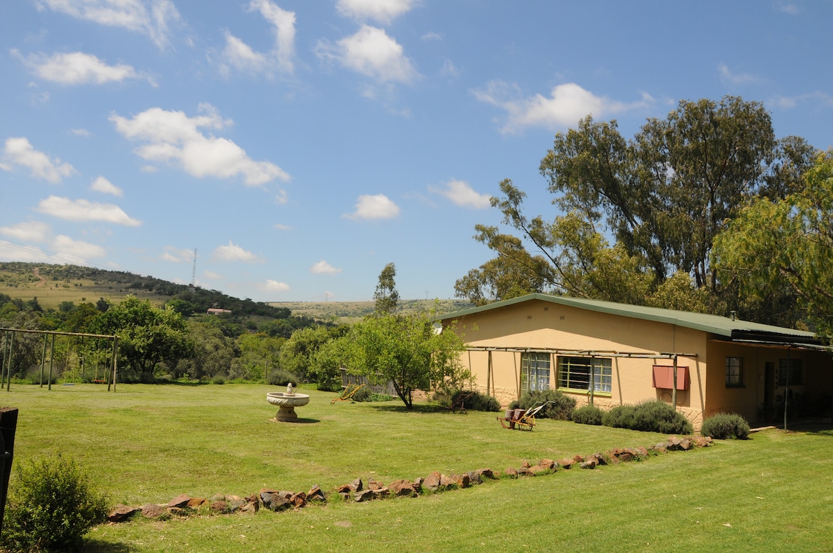 Moderna y tranquila granja con caballos a solo 2 km de excelentes tiendas, deliciosos restaurantes y entretenimiento de aventura. Nuestra casa de campo recién renovada tiene todo lo necesario para una estancia cómoda y relajante a solo 1 km de la N14 y a 16 km del aeropuerto de Lanseria. Bordeando la Cuna de la Humanidad A 2 km del Hospital Privado Pinehaven, el Centro Comercial Cradlestone y el Casino Silverstar. A 5 km del Campo de Golf Ruimsig. Otras atracciones cercanas incluyen parques de vida silvestre, zoológicos, 4x4, globos aerostáticos, puenting, senderismo, etc.