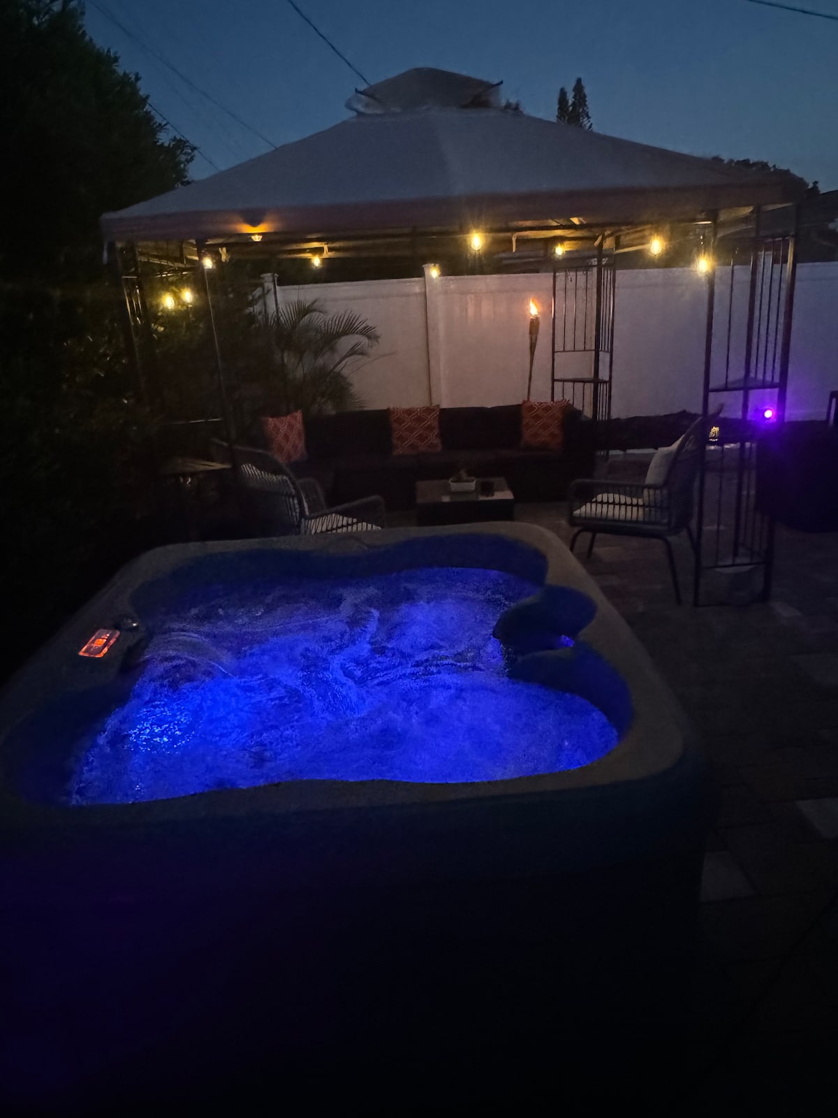 Disfruta de una estancia relajada en la costa en este luminoso alojamiento de 2 dormitorios y 1 baño. Las características incluyen una cocina espaciosa y totalmente equipada, comedor separado, televisores en ambos dormitorios y en la sala de estar, y un patio cubierto perfecto para relajarse. Ubicado a solo 9 minutos del Anclote Gulf Park, a 20 minutos del Howard Park y a 35 minutos de la famosa Clearwater Beach. Una base cómoda y fresca para tu escapada a la costa del Golfo.