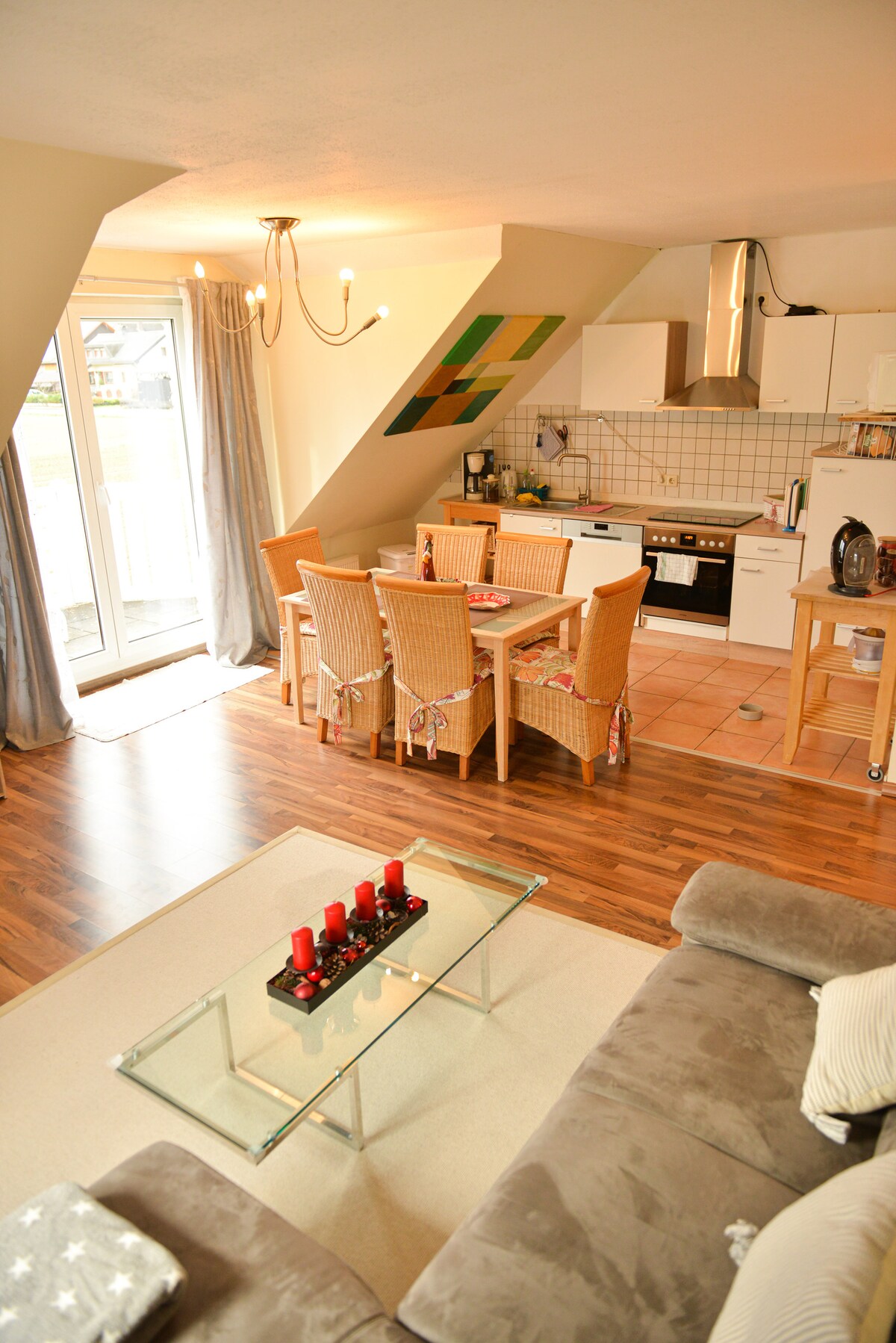 Apartamento luminoso y recién renovado en un ático de una casa familiar de 6. En las afueras del pueblo de Stahle, distrito de la ciudad patrimonio de la humanidad de Höxter, en el hermoso Weserbergland, directamente en el Weserradweg. El apartamento pequeño (34 m2) se puede reservar para 2 a 4 personas y tiene un salón-dormitorio, cocina y baño. También se puede utilizar un gran jardín con zonas de estar y zona para tomar el sol. Se admiten mascotas pequeñas. Hay wifi disponible.