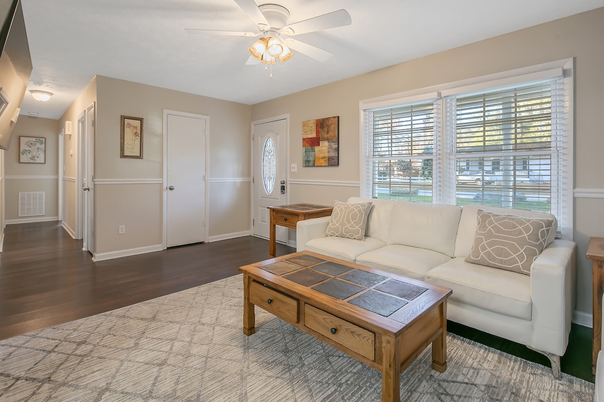 Esta casa de 3 dormitorios recién reformada está perfectamente ubicada en el centro de Fayetteville. Incluye colchones nuevos, muebles, electrodomésticos de acero inoxidable, armarios con encimeras de granito, cuatro televisores de pantalla plana 4k y una cocina totalmente equipada. El Centro Médico Cape Fear Valley está a solo 0,07 millas de distancia, a 9 minutos de Fort Bragg, a 0,02 millas de Starbucks y 3 tiendas de comestibles, muchos restaurantes dentro de un radio de 1 milla. El centro comercial Cross Creek está a 3,2 millas de distancia, junto con otros destinos de compras cercanos.