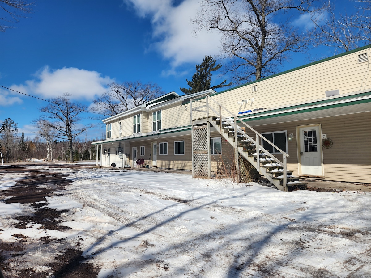 Tenemos una habitación pintoresca, acogedora y limpia, con un exterior en construcción (construido en la década de 1950/comprado en 2025) situado a 28 millas de los senderos de ciclismo de montaña de Copper Harbor. No aceptamos mascotas en este momento, alergias graves. Hay dos restaurantes a poca distancia a pie, Slims Cafe (cerrado los lunes) y Glacia Tavern (cierra los martes). Disfruta de una buena noche de descanso y un sabroso desayuno al lado antes de que comience tu aventura. - Sendero para vehículos todo terreno al otro lado de la carretera desde nuestro aparcamiento. -21 millas de MTU
