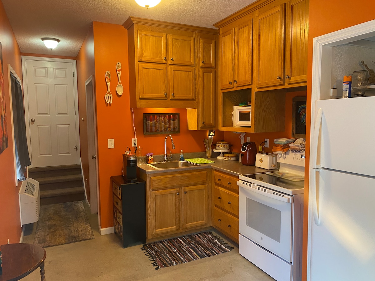Wee Nook es un espacio habitable de 360 pies cuadrados con cocina completa y baño. Está escondido bajo tierra en medio del bosque. ¡Ven a disfrutar del bosque, los animales de granja, los senderos, el estanque y el amplio espacio abierto mientras estás aquí! Como dijo JRR Tolkien: «En un agujero en el suelo vivía un hobbit. No era un agujero desagradable, sucio y húmedo, lleno de gusanos y con un olor fétido, ni tampoco un agujero seco, desnudo y arenoso sin nada para sentarse o comer: era una madriguera de hobbit, y eso significa comodidad».