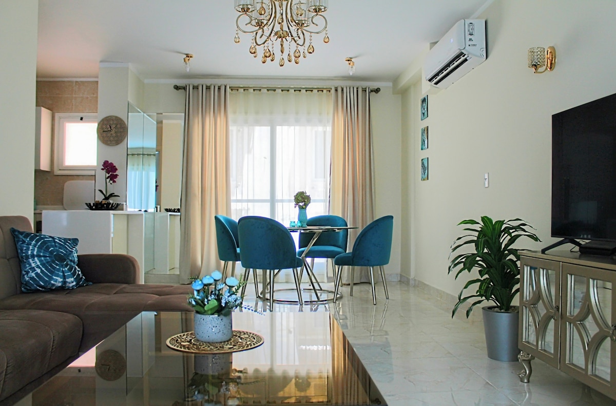 Amazing apartment in the heart of Hurghada! Our place will make you feel as if you are at home and offer you endless peace of mind with its panoramic view. With this prime location, you will be able to roam around downtown Hurghada by foot. It has an artistic feel with shades of blue that reflect the amazing view. With access to a private beach and a private pool guests can simply enjoy their stay without even leaving the compound.