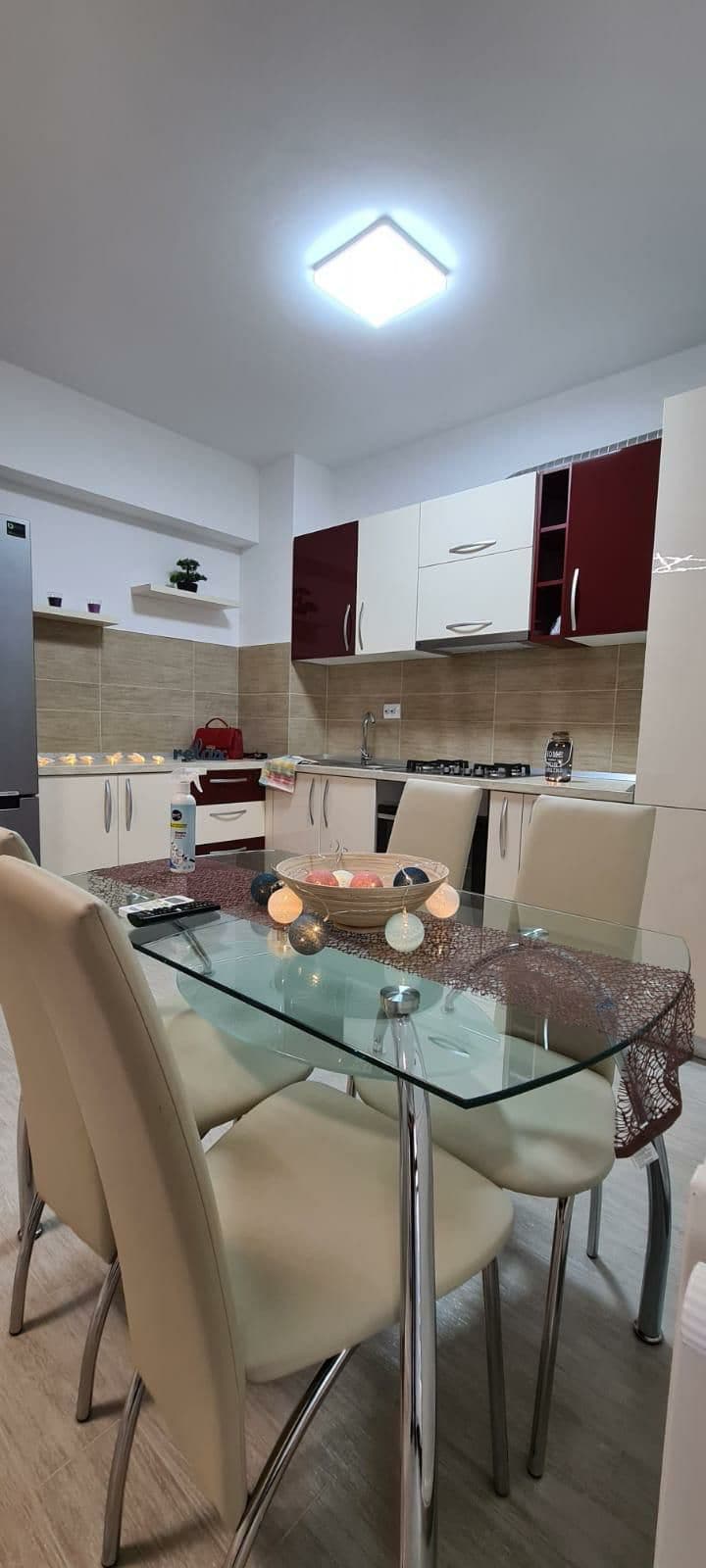 Apartamento de 2 dormitorios, sala de estar de espacio abierto, 2 baños; terraza al aire libre con gran vista a la ciudad, 1 balcón cerrado se comunica con uno de los dormitorios, amueblada moderna,cocina con todos los servicios, como vajilla ,ollas,sartenes para estadías más largas. Ubicado en el centro de la ciudad a vis a una rapa Galbena a 10 minutos de la estación de tren,Universitate,UMF,Pța Unirii. En la propiedad hay una parada de tranvía. A 15 minutos del Metropolitan , el Teatro Nacional, la Iglesia de Tres Jerarcas, el centro comercial Palas y el Palacio de la Cultura.
