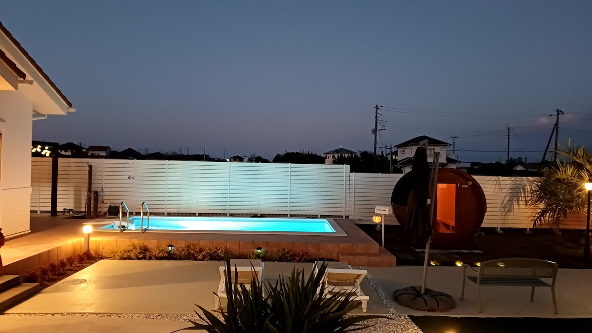 Salón de sauna (abierto todo el año) Sumérgete en la piscina o en el baño de aire libre para calentar tu cuerpo. ■Capacidad máxima de 6 personas Por favor, consulte con nosotros si desea añadir niños. Liana Pool Villa Hachiojo, con vistas a la piscina desde todas las habitaciones, a pocos minutos a pie de la costa de♪ Hachiojo. Villa de lujo de una sola planta que se alquila como una casa ¡La hamaca extra grande de la sala de estar es perfecta para la siesta! Un pequeño resort de playa donde podrá relajarse en un espacio privado El sonido del agua y su hermosa superficie son relajantes (no es una piscina de agua caliente) Plazas de aparcamiento para 3 coches Hay un conbini a poca distancia a pie.◎ ¡Se puede hacer■ barbacoa! (Pago aparte, reserva obligatoria) Por favor, póngase en contacto con nosotros ☆Set completo de utensilios para barbacoa, carbón, etc. Por favor, traiga sus propios☆ ingredientes Por razones de☆ seguridad, no se permite traer utensilios propios. Se puede pedir comida de entrada del■ popular restaurante Le Pain. Por favor, pregunte en el momento de la reserva Para un uso■ relajado, se requiere un mínimo de 4 personas.◎ * No se permite la entrada a menores de 20 años *Debido a que es una zona tranquila, se ruega que no hagan ruido los huéspedes que deseen hacerlo. ※ Se prohíbe la entrada a personas que no sean huéspedes. ※En caso de quejas o incumplimiento de las reglas, se procederá a la expulsión inmediata Te enviaremos un mensaje después de recibir tu solicitud de■ reserva. Si no hay respuesta, la solicitud será rechazada, así que tenga cuidado.