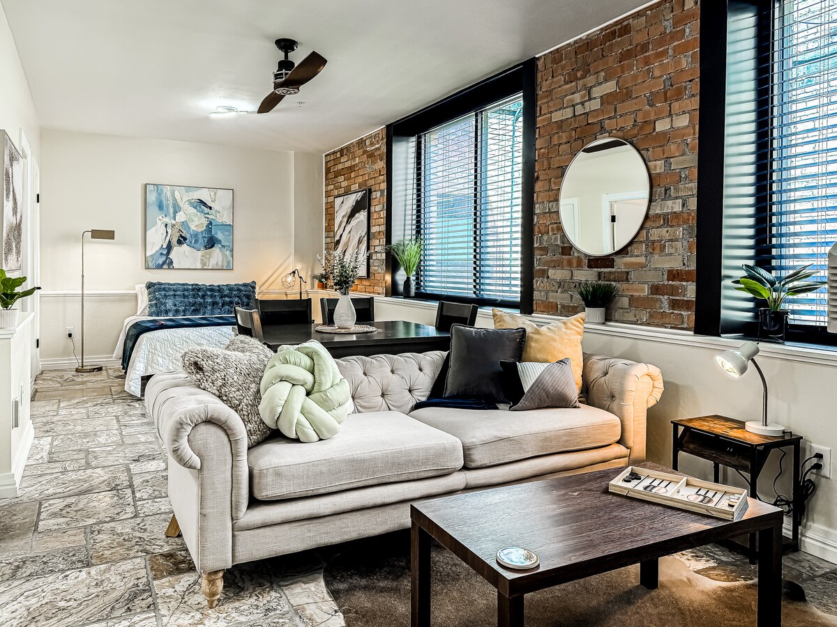 Este moderno departamento tipo estudio abierto y refrescante está a una cuadra de Porter Park y a 3 cuadras del campus de BYU-Idaho. En el momento en que entras al departamento, sientes la suave luz de las enormes ventanas y te preguntas... ¿es realmente un sótano? Encontrarás un baño de lujo equipado con chorros corporales, ducha de efecto lluvia y bañera profunda llena de caños de cascada. La cama es maravillosamente cómoda con un topper esponjoso y transpirable. ¡Incluso puedes acurrucarte en el fuego o disfrutar de tus programas favoritos en la televisión inteligente!
