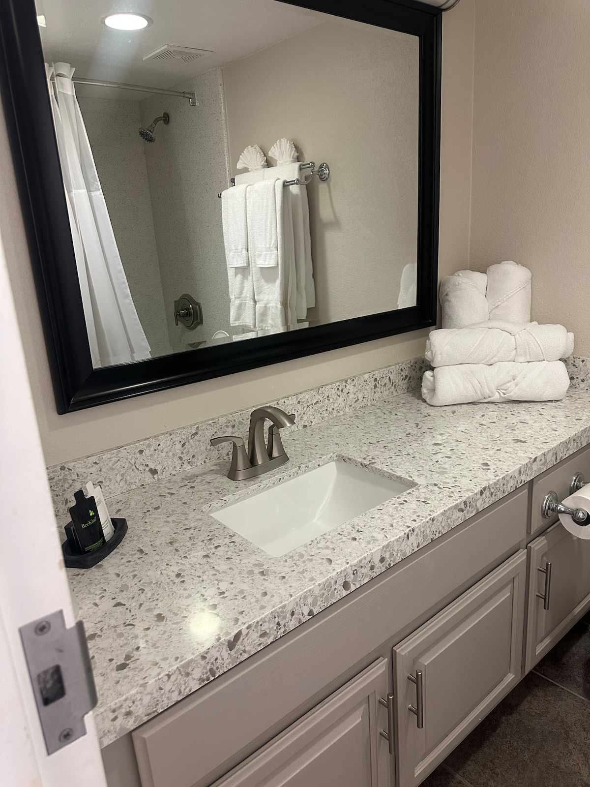 Polaris Suite, llamada así por la estrella polar, es una de nuestras cuatro habitaciones disponibles. Esta habitación privada cuenta con un colchón con la parte superior acolchada tamaño queen, sábanas 100 % de algodón de alta densidad, TV de pantalla plana con streaming, mininevera, Kuerig, baño de azulejos de piedra con ducha a ras de suelo, toallas limpias, un balcón privado con mesa y sillas con impresionantes vistas a Strawberry Creek. El acceso al vestíbulo con chimenea, cocina, barbacoa, terraza y bañera de hidromasaje son potencialmente áreas comunitarias, aunque a menudo no están completamente reservadas.